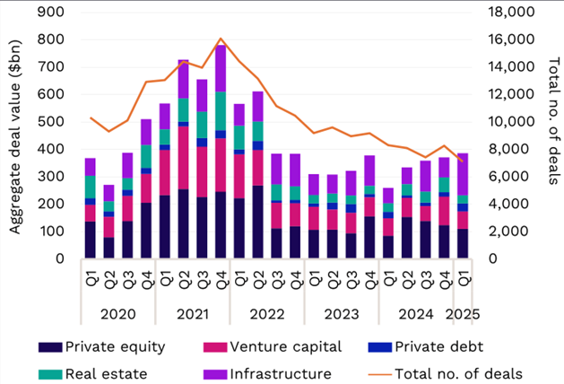 - Market Rebound and Deal Activity: In Q1 2025, the U.S. contributed significantly to Europe’s deals volume (as per paragraph on Europe above), reflecting continued momentum.